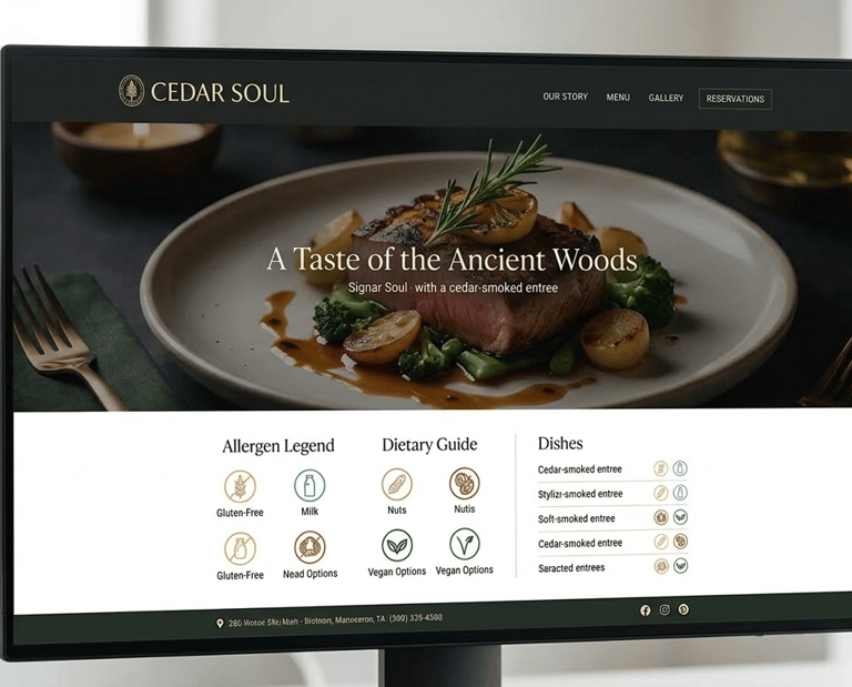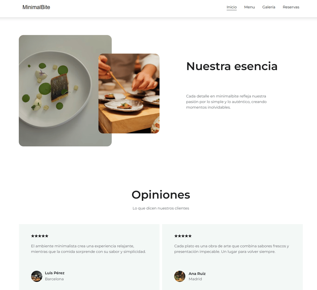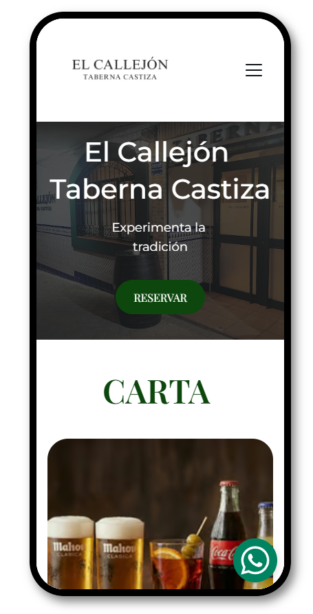 Una web profesional, rápida y adaptada a móvil (responsive) que represente tu local en internet, tu hogar digital. Incluye carta integrada, galería de fotos, mapa de ubicación y formulario de reservas.